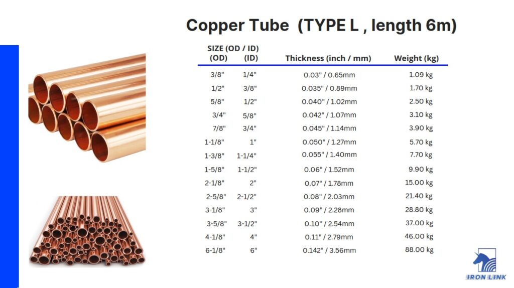 ท่อทองแดง ชนิดเส้น เป็นท่อที่ใช้กับงานบ้าน มีขนาดความหนาปานกลาง สามารถทนแรงกดได้มาก โดยมีความยาวต่อเส้น สูงสุด 6เมตร ( สามารถสั่งตัดตามความยาวที่ลูกค้าต้องการ )